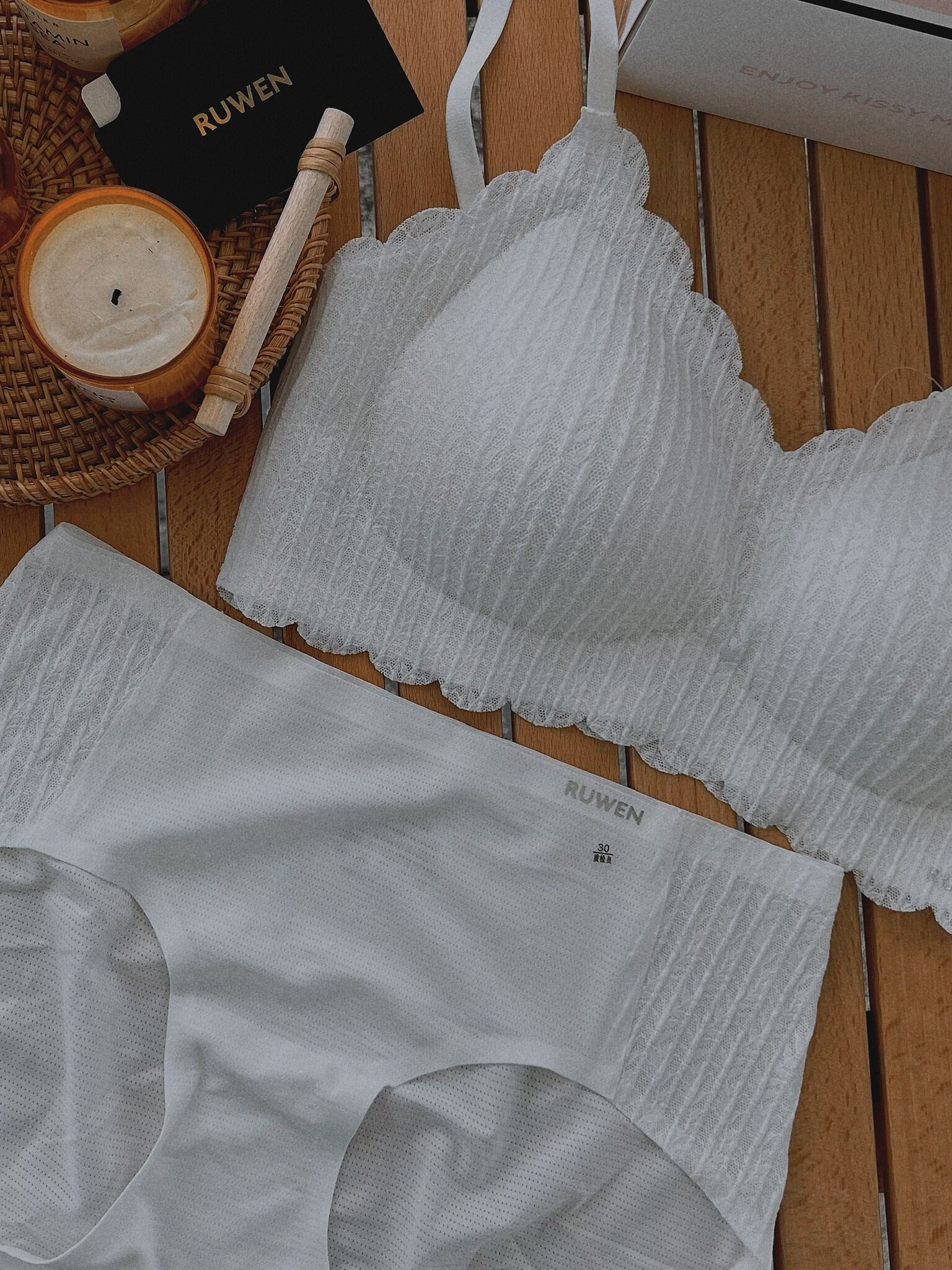 • Our wheat ear lace bras are made from a combination of fine modal fabric with a yarn count of 100 and superfine silk/spun silk.