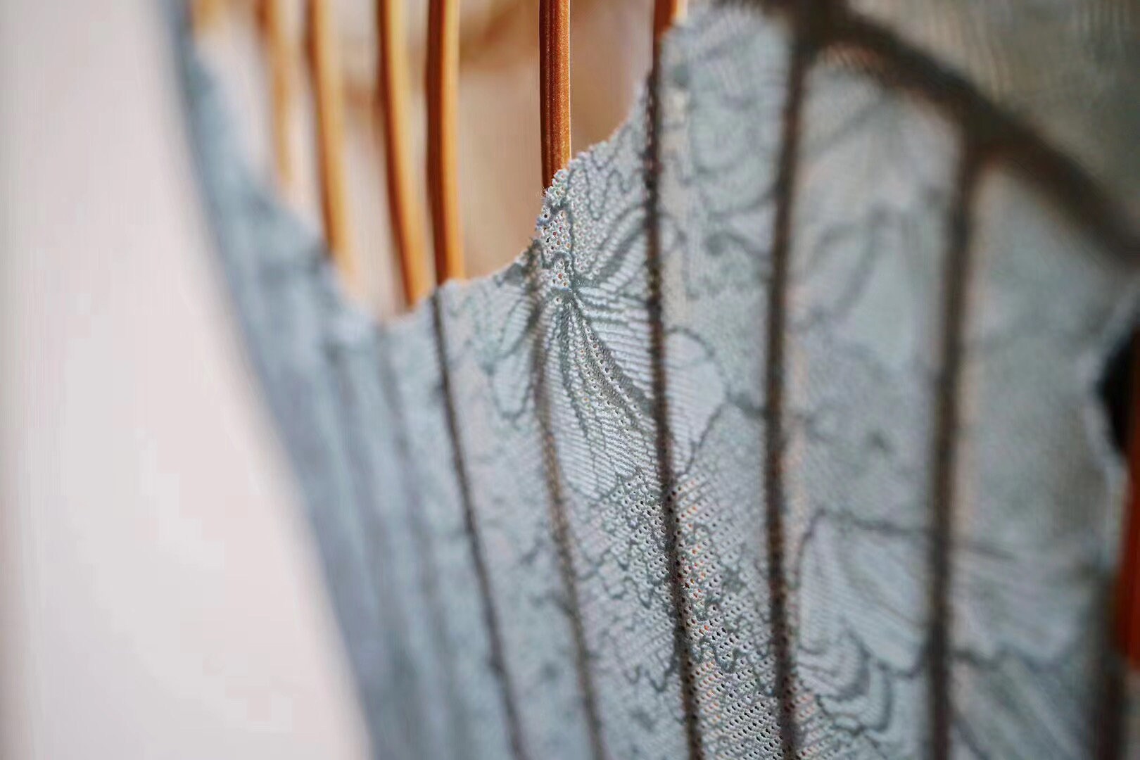 • The lace designs are made of silk and use a new weaving technique which allows for more three-dimensional and beautiful lace designs.